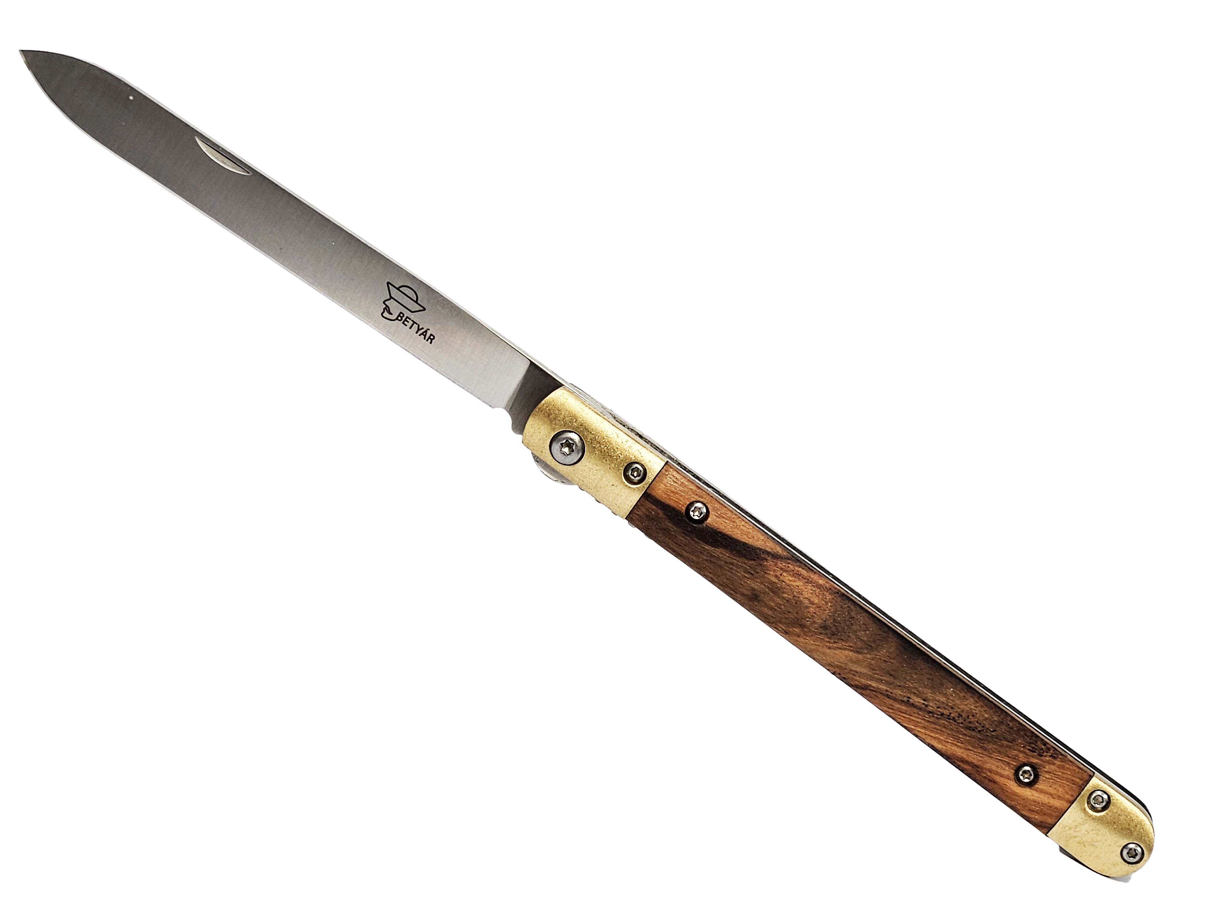 A Betyár Bicska gyártó teljes hűséggel készítette el újra a Szalonnázót, tovább éltetve hagyományainkat. Ez a kés nem mindennapi használatra, sokkal inkább étkezéshez, steak, szalonna és egyéb ételek vágásához, jóízű falatozáshoz készült. A korabeli típusok egyszerű nyitással rendelkeztek, azonban ez a modell már megkapta a mára mindenhol elterjedt és alkalmazott Liner-lock rendszert, így nyitás után a penge felfogatása masszívan rögzül egy lemeznek, mely a helyén tartja. Ennek a belső lemeznek az oldalra nyomásával oldható a rögzítés és hajtható vissza a penge a markolatba. A bicska jellege miatt ezt az eszközt nem látták el övklipszel sem, hiszen egy zsebben, akár öltönyben is kényelmesen elfér feltűnés nélkül. Markolatát fekete festésű diófából készítették. Súlya szinte észrevétlen.