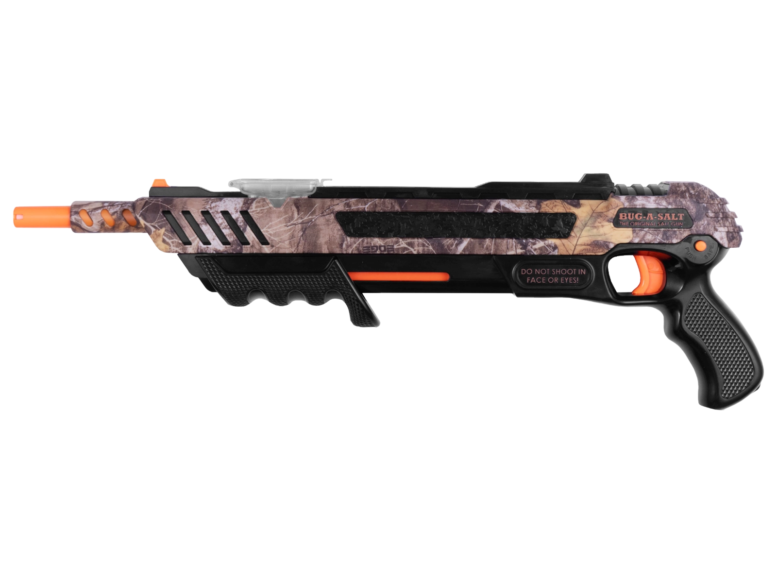 A Bug-A-Salt puska konyhai, vagy tengeri sóval működik, így lényegében nem koszol használat közben! Működtetése megegyezik egy rugós airsoft shotgunéval, tehát az előagyszánnal felhúzzuk, az elsütőbillentyű meghúzásával elsütjük a fegyvert. Biztosítója a söréteseken már ismert manuális stift jellegű. Hatásos lőtávja csak a sócsemcsék finomságán múlik, tehát ha nagyon finom szemű sót használsz, közel hatástalan a fegyver, de ha durvaszemű tengeri sót... nos abból még a lódarázsnak is maximum egy ismétlés fog kelleni! Igen, jól olvastad!