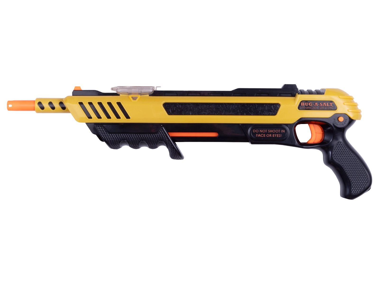 A Bug-A-Salt puska konyhai, vagy tengeri sóval működik, így lényegében nem koszol használat közben! Működtetése megegyezik egy rugós airsoft shotgunéval, tehát az előagyszánnal felhúzzuk, az elsütőbillentyű meghúzásával elsütjük a fegyvert. Biztosítója a söréteseken már ismert manuális stift jellegű. Hatásos lőtávja csak a sócsemcsék finomságán múlik, tehát ha nagyon finom szemű sót használsz, közel hatástalan a fegyver, de ha durvaszemű tengeri sót... nos abból még a lódarázsnak is maximum egy ismétlés fog kelleni! Igen, jól olvastad!