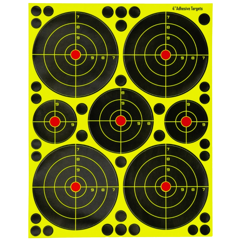 - Egy lapon 7 darab cél található, három különböző méretben: 100 × 100 mm, 76 × 76 mm és 50 × 50 mm.
