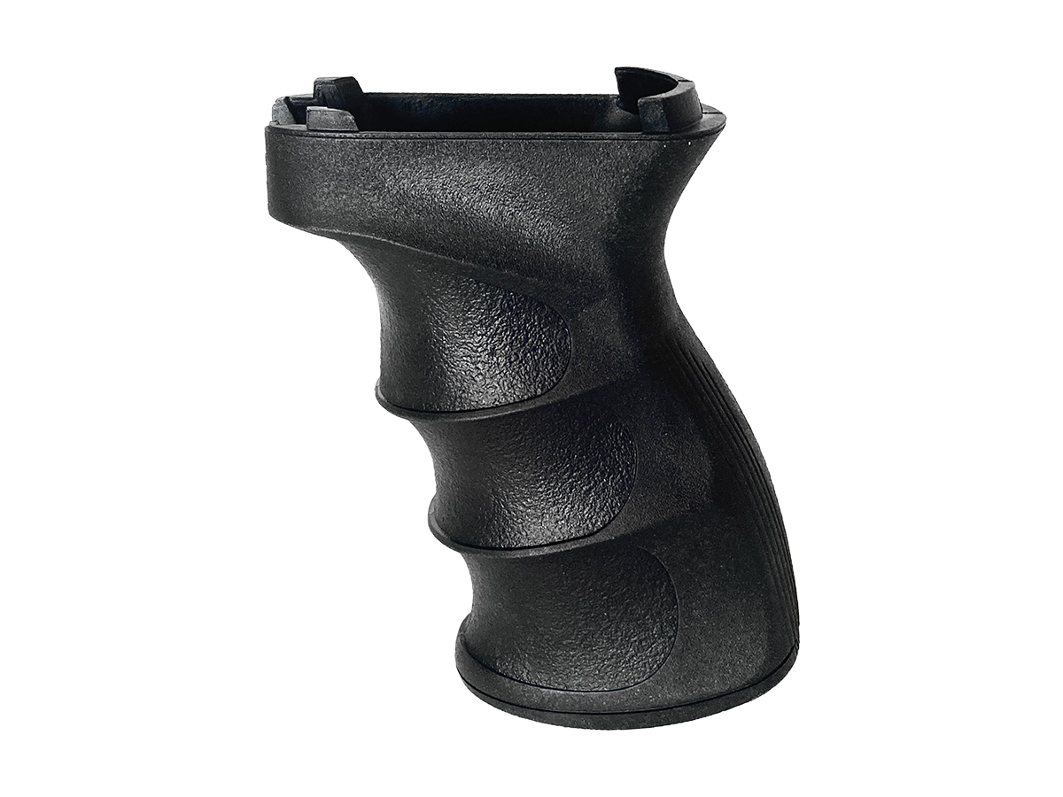 Ergonómikus kialakítással készült pisztolymarkolat elektromos airsoft Kalasnyikov fegyverekre. A markolat belsejében kényelmesen elfér a fegyver motorja.