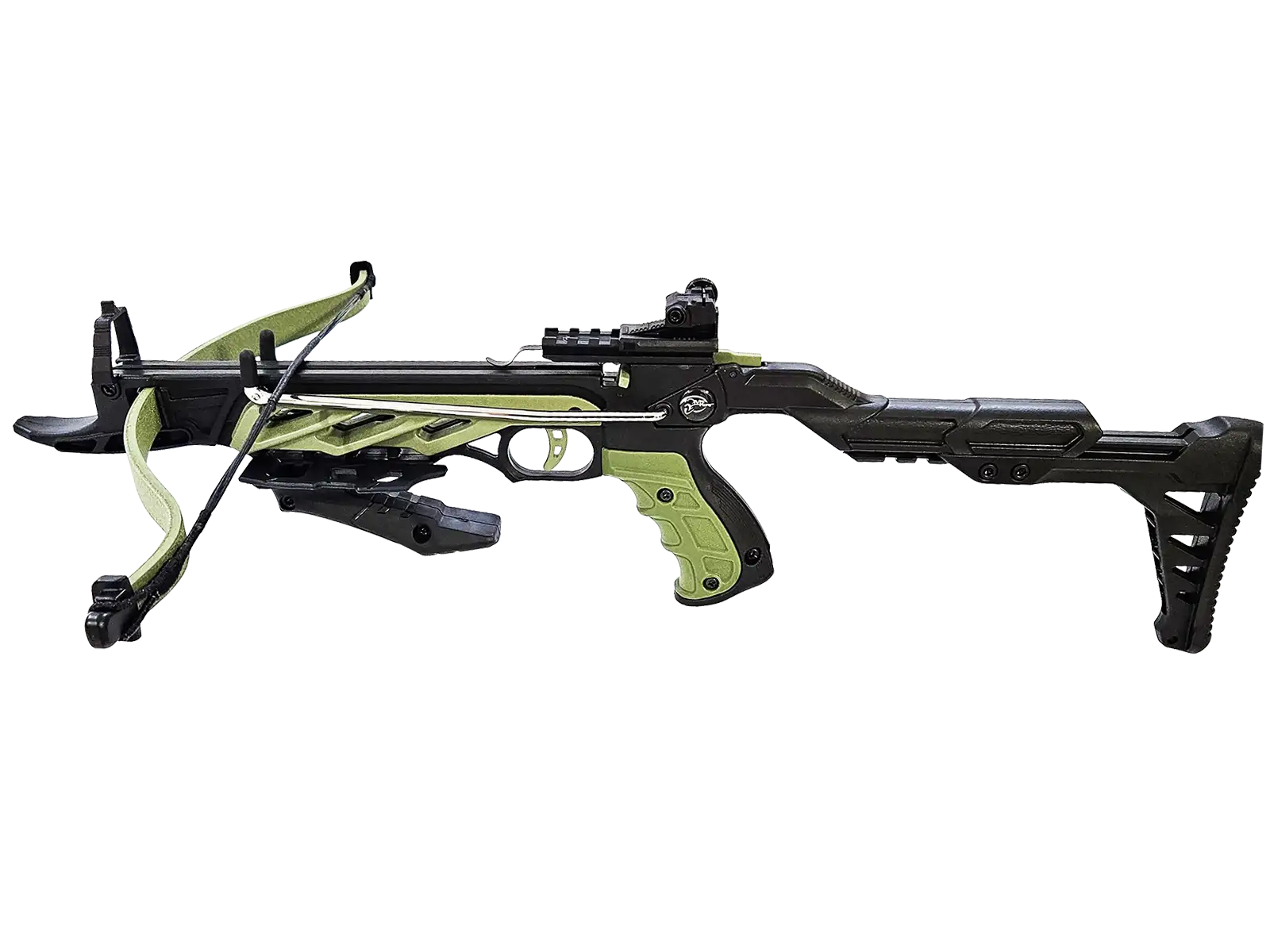 Igen komoly 80 fontos erőt képvisel, ami már önmagában is csábítóan hangzik, továbbá ezt a nyílpisztolyt ellátták alsó, és felső weaver sínekkel, az irányzék is erre lett felerősítve, így red-dotra, vagy kisebb távcsőre cserélhető, alulra pedig a markolatot tudjuk erősíteni, ami igény szerint szintén cserélhető más típusúra, de a gyárival is tökéletes fogást ad.