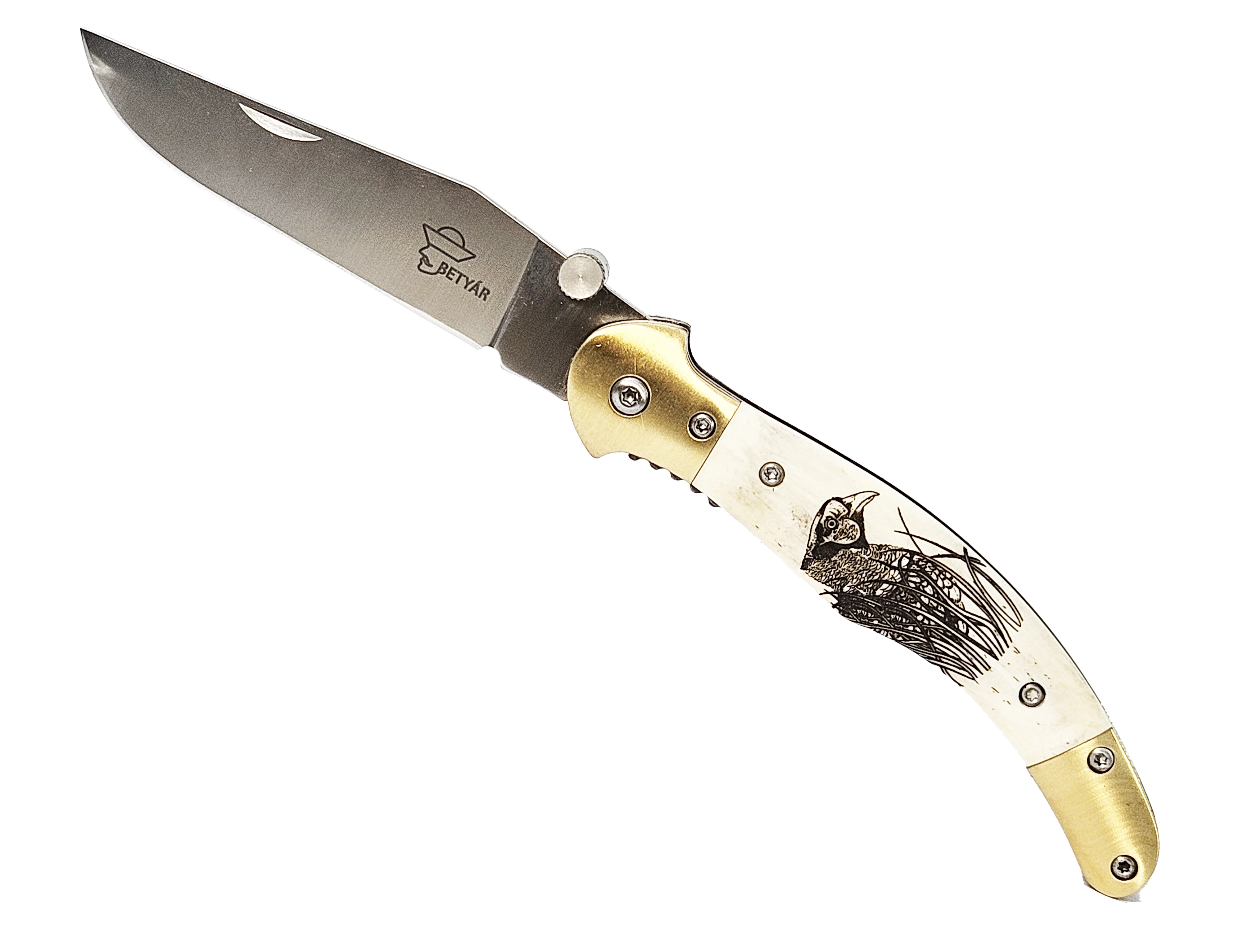 A Betyár Bicska egy hamisítatlan magyar gyártó, csak és kizárólag magyar késeket készítenek, nem csoda, hogy a legnépszerűbb, leginkább elterjedt Fejesgörbe kés is a repertoár részét képezi, hiszen ezzel a típussal teljesedik ki az igazán magyar kések felhozatala. A Betyár Bicska elképzelésében ez a bicska is csak minimális modernizáción esett át, épp csak annyira, hogy az ne érintse az autentikusságot, de továbbra is kényelmesen és biztonságosan lehessen használni. A Fejesgörbe így liner-lock nyitást kapott, mely a legelterjedtebb rendszer, több taktikai modellen is. A lényege, hogy a penge kinyitása után annak illesztését egy, a markolaton belül lévő lemez megakasztja és stabilan a helyén tartja, míg hüvelykujjunkkal azt befelé nem nyomjuk és visszahajtjuk. A penge S44002-es rozsdamentes acélból készült, alul kiszélesedő részére egy nyitáskönnyítő került. Markolatpaneljeinek csont részeit alul és felül is fém részek zárják, így tartós masszív darab.