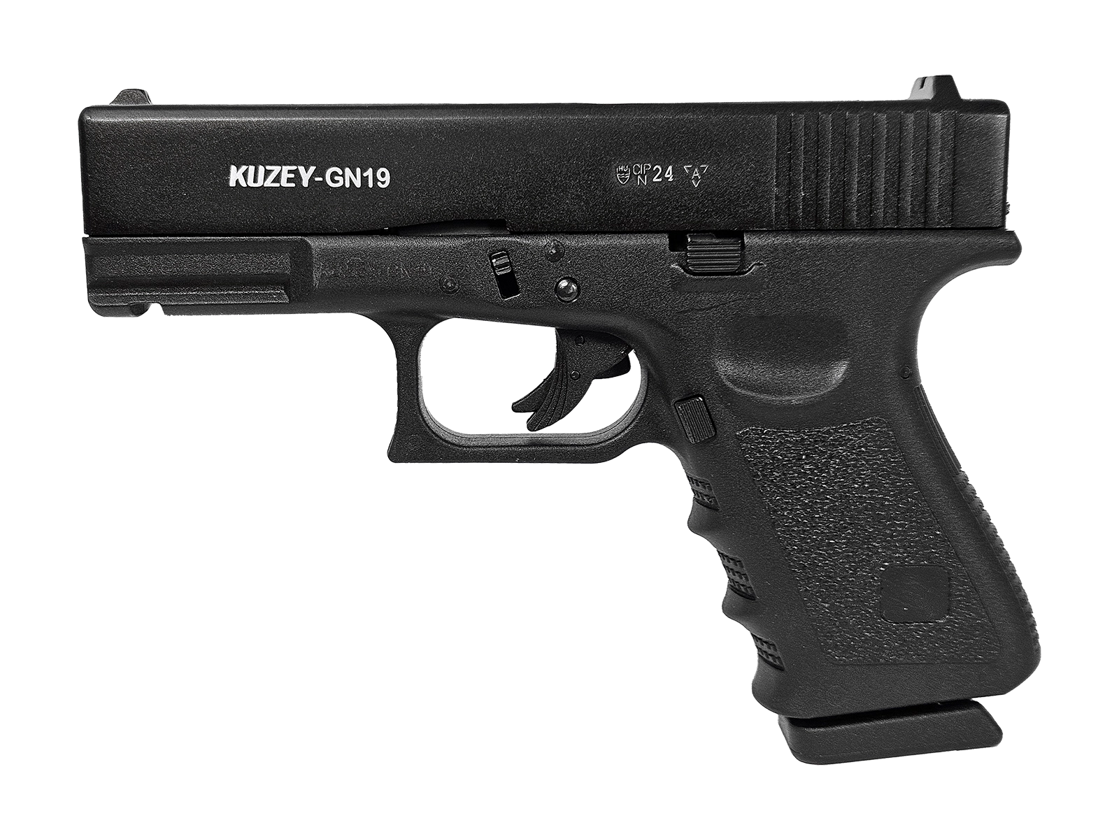 A Kuzey egy már Magyarországon is nagy hírnévre szert tett török fegyvergyártó cég, kiknek a termékeit leginkább a gáz-riasztó pisztolyaik miatt ismerheti a magyar használó. A Kuzey GN 19-es a Glock 19-es pisztoly lehető legélethűbb másolata, ami méreteiben is épphogy cska eltér az éles változattól, így akár a tokoba is passzolhat, amiket Glock pisztolyokhoz gyártanak. Rendszere belső kakasos, és a Glock pisztolyokra jellemző minden funkció megtalálható és működik is rajta. Manuális biztosítót itt értelem-szerűen nem fogunk találni, hiszen az elsütőbillentyűbe építették azt be, így csak akkor képes elsülni a pisztoly, ha a használó megnyomja az elsütőt.