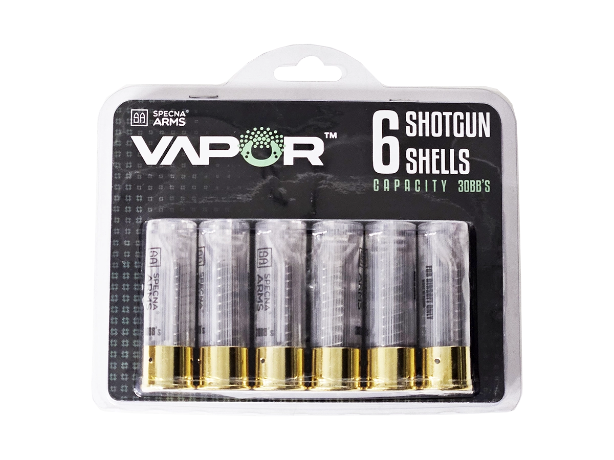 6 darab shotgun shell 30-as BB kapacitással. Használható rugós és gázüzemű airsoft shotgunokban egyaránt. Minden Tokyo Marui kompatibilis gyártó fegyverébe betölthető.