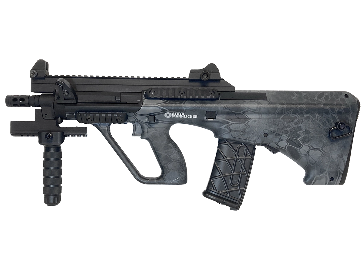 Az AUG-ot 1978-ban rendszeresítették STG-77 néven, elsősorban az osztrák Bundesheer részére, de formatervezése, és működése hamar ismert és elismert eszközzé tette a kormányok hadseregek berkeiben. Ez volt az első rohampuska ami saját optikai irányzékkal rendelkezett. A Bullpup rendszer és a gyorscsőcserés megoldás miatt univerzális eszközzé vált. Pár mozdulattal át lehet alakítani golyószóróvá, vagy akár DMR-é is.