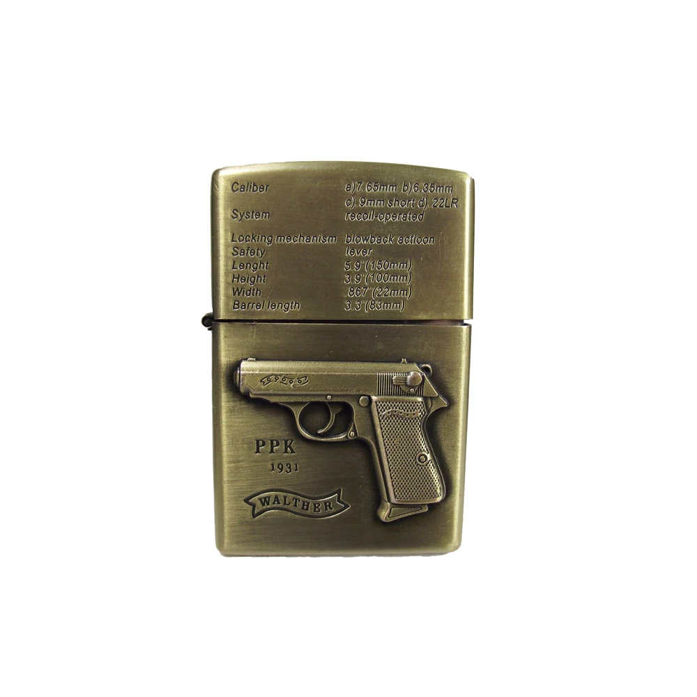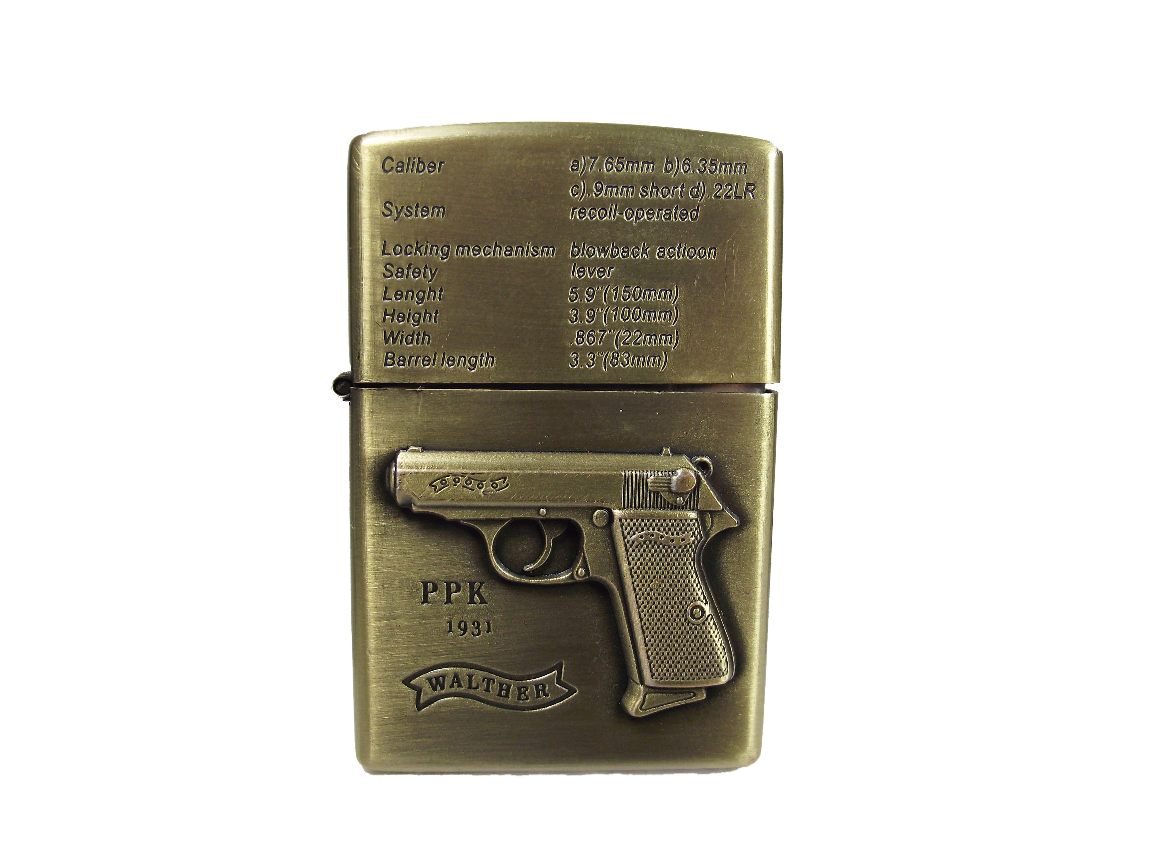 Az öngyújtón a P38-as pisztoly, vagy a Walther PP van, az összes műszaki és működési adataival.