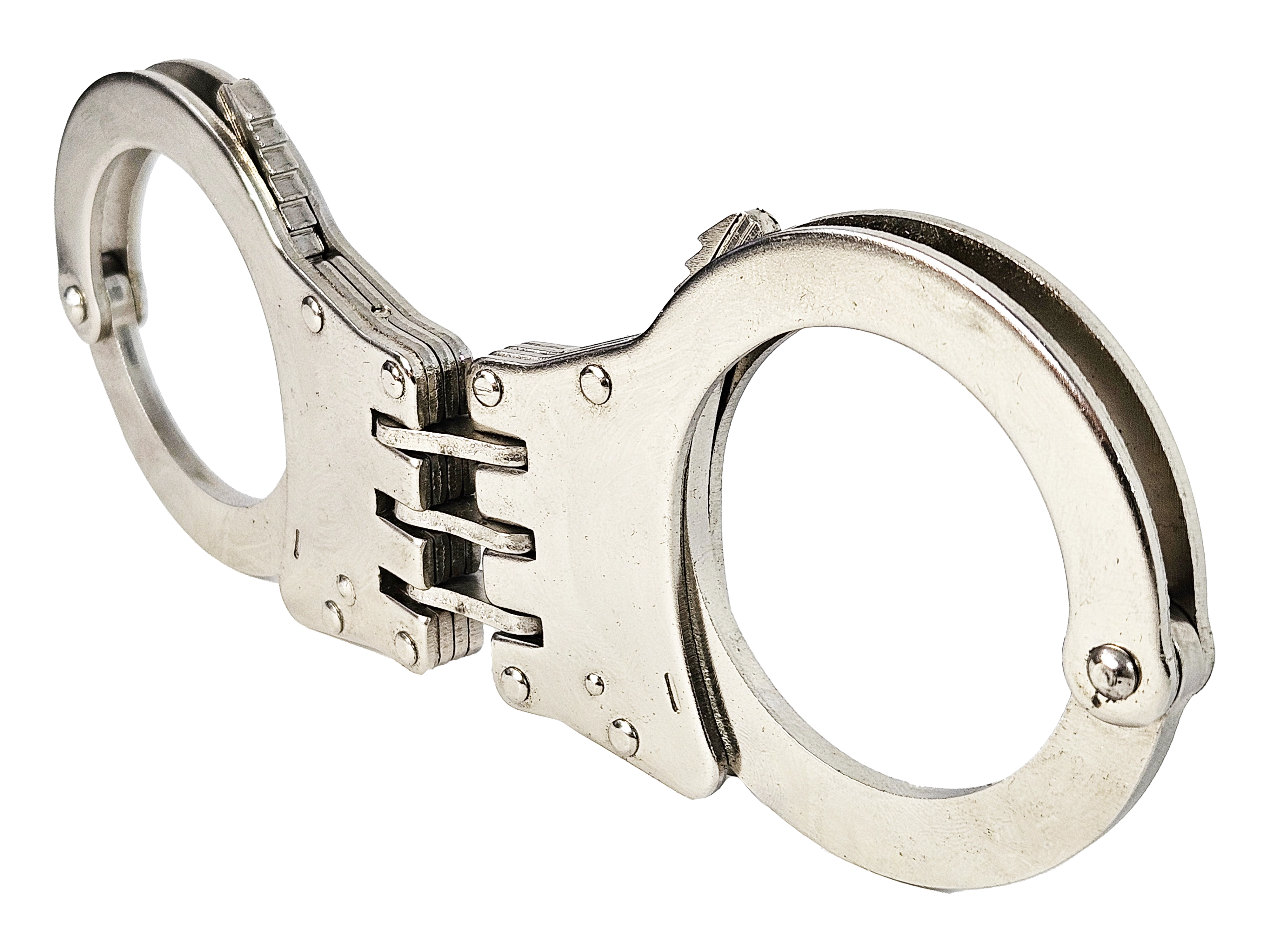 Szénacélból kovácsolt, tripla zsanérral ellátott bilincs, ami a lehető legkisebb mozgást engedi az elkövetőnek. A bilincshez két kulcs tartozék.