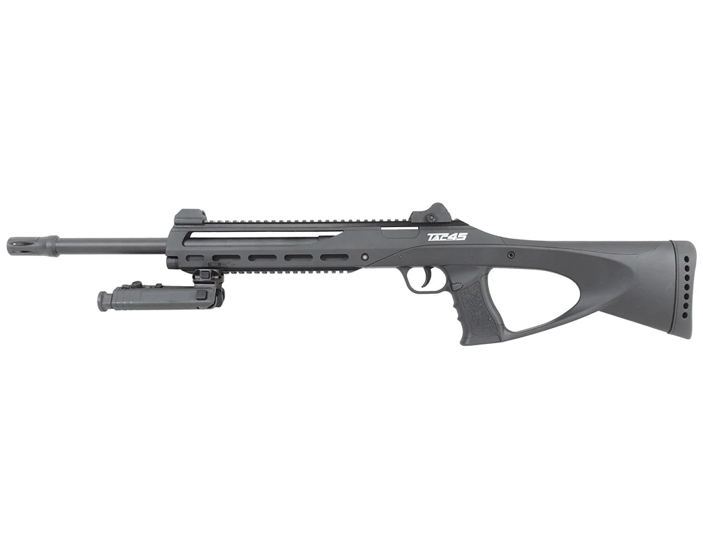 A TAC 4.5 egy igazi taktikai álom a légpuskák közt. Megjelenése, kialakítása és számos hasznos lehetősége teszi azzá. CO2-es patronokkal működik, így a tűzgyorsaságra nem lesz panaszunk. Az ergonómikus modern markolaton belül a hüvelykujjunknak külön gumiborítást helyeztek el, még precízebbé téve így a lövés leadását, a fegyver irányozását. A tus végén is hasonló anyagból készült talp található, ami kényelmessé teszi a célzást.